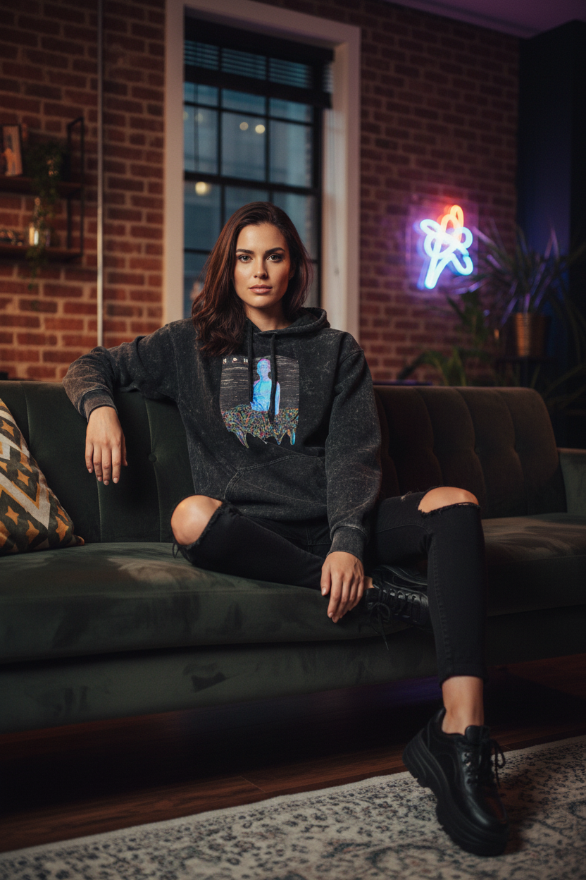 Glitched Acid Washed Unisex Hoodie